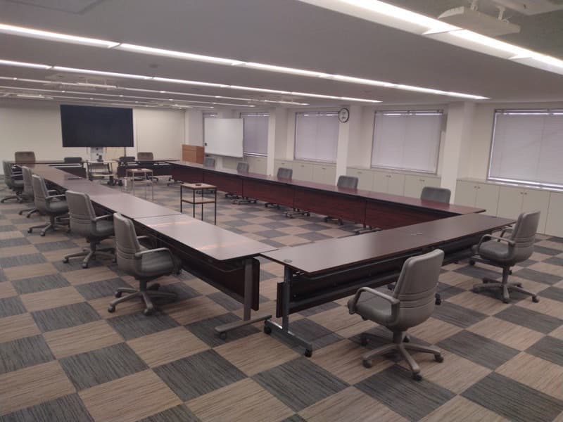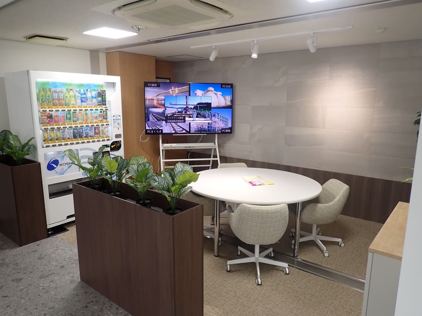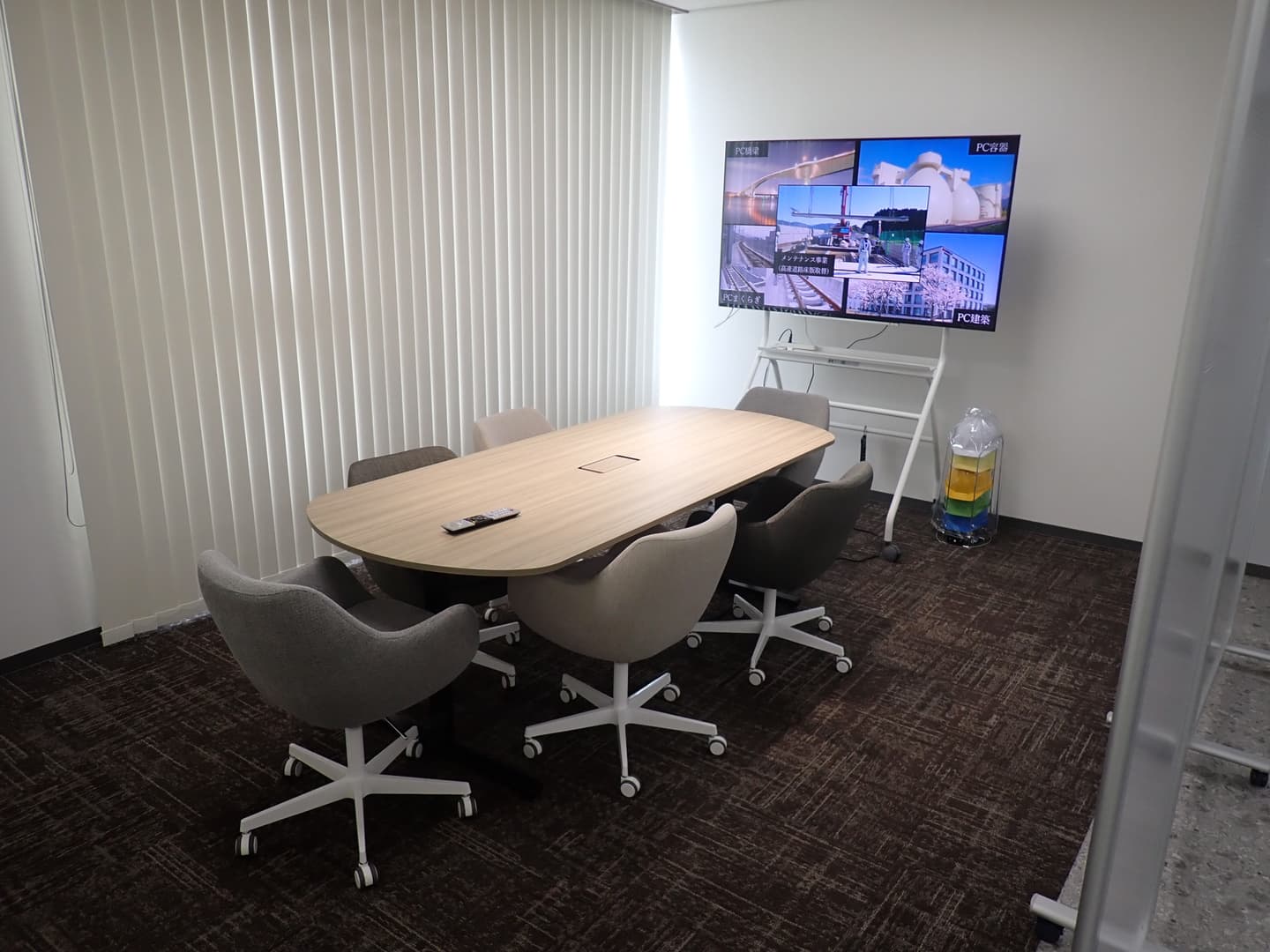 オンラインビデオ会議の設備が整っておりますので各拠点を繋ぎオンラインビデオ会議を行ったり、複数人規模での打合せ、各部署の会議、年に1度の決算報告・新発式など色々な用途で使用されます。