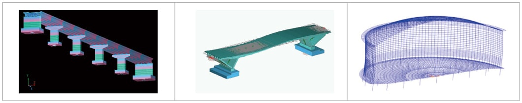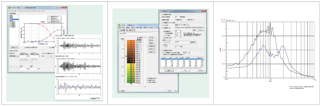 構造物を2次元もしくは3次元でモデル化した上で、地表面に時間とともに変化する地震波形を与え、時々刻々と変化する構造物の変位および断面力を計算することができます。