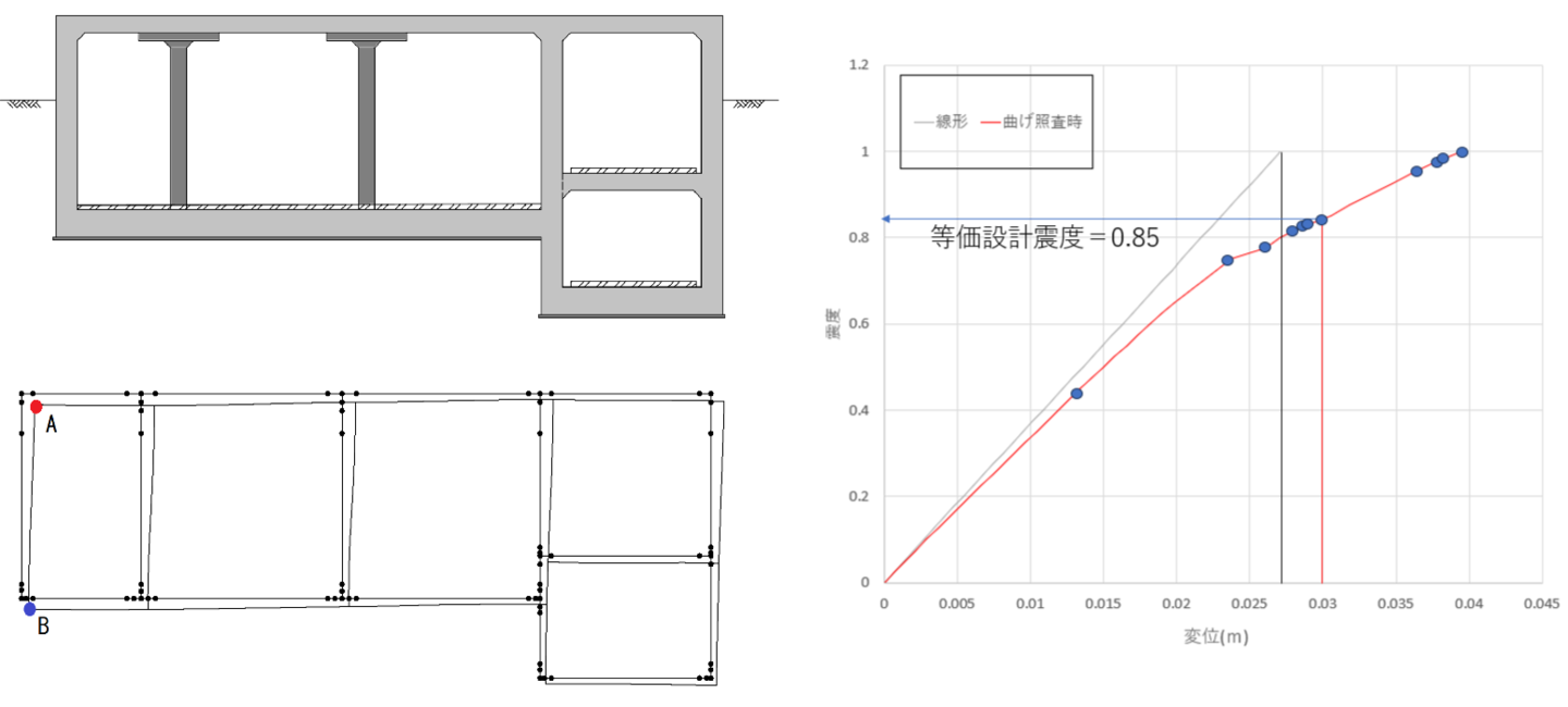 プッシュオーバー解析とは,地震による荷重を段階的に作用させることによって,構造物の保有耐力,変形性 能,損傷モードを求めることができ,保有性能を評価するための解析手法です。